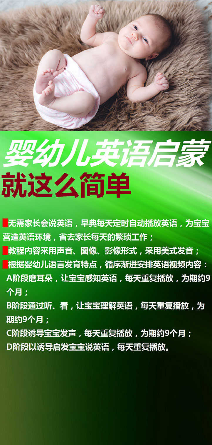 早典英语启蒙APP主要为0-3岁婴幼儿提供英语启蒙环境,其特点是每天能自动定时播放英语,为婴幼儿提供一个沉浸式英语环境,随着宝宝自然成长也自然获得英语听说能力,为宝宝将来在小学、中学英语学习打下坚实基础。宝宝自满月起开始使用本APP,直至小学,是一个长期学习过程。APP内容丰富多彩,有认知、经典儿歌、动画、寓言故事以及互动学习,发音纯正。